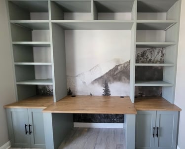 If you are looking for a more built-in look, with cabinets and shelving, the perfect colors, and changing the whole space, let's talk about your vision for your space. With the ability to build and customize everything, we think we'll be able to come up with something that will meet your needs and your wants.