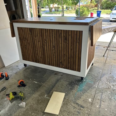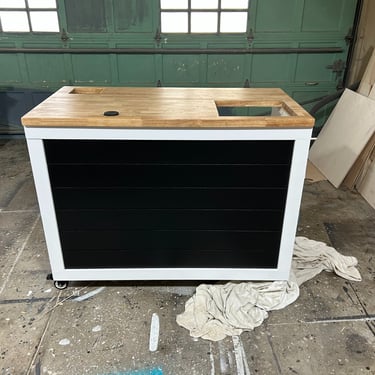 Serve anywhere with style and ease. Our collapsible cart is designed for mobility, function, and presentation--perfect for pop-up markets, events, and compact spaces. Built with a sturdy wood frame and smooth rolling casters, it folds down in minutes for effortless transport and storage. The durable countertop provides ample workspace for whatever needs you may have. Customizable layouts and design will make your cart truly unique to your brand and business. Whether its coffee, mini-pancakes, ice cream, or retail--you name it--we can customize it to fit your needs.
