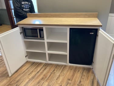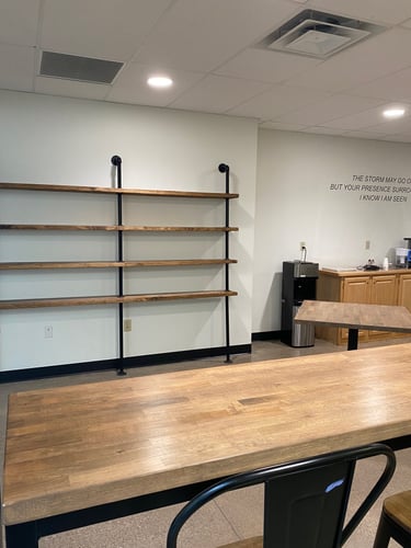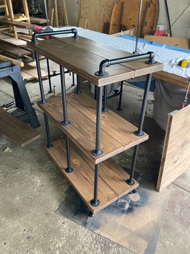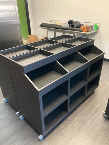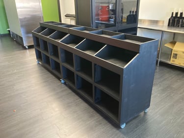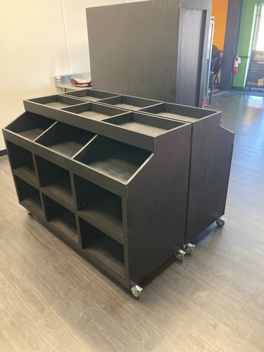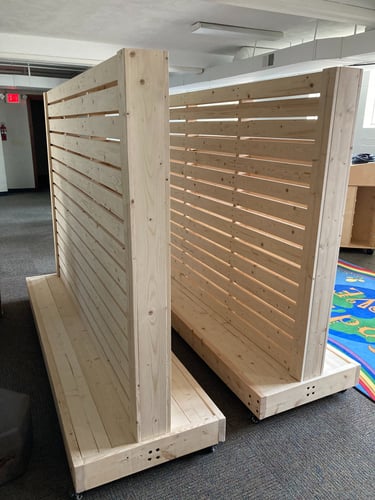 Sometimes you are wanting to build or create something you can't find anywhere else. Maybe you've seen a video or picture, and the only solution is a custom made piece. We're happy to discuss your project or ideas, and if we can make it happen, we'll definitely give it our best. On this page you'll see some of those creations! Seen in this image is a rolling wall divider (back of image) that is about 8' wide x 6' tall with the ability to hang items on the slats. Follow the button below to get started!