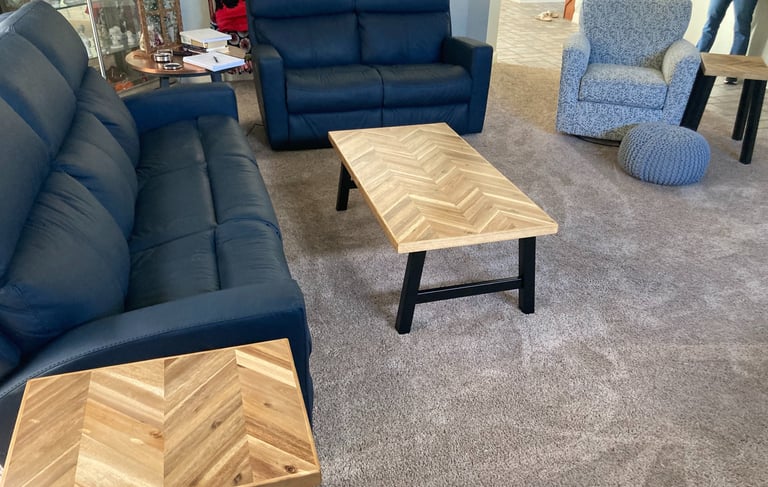 Our client was looking for a new living room set, and after months of looking in all the stores, we came up with a unique design. Simple, sturdy enough with multiple dogs in the house, and just the right sizes.